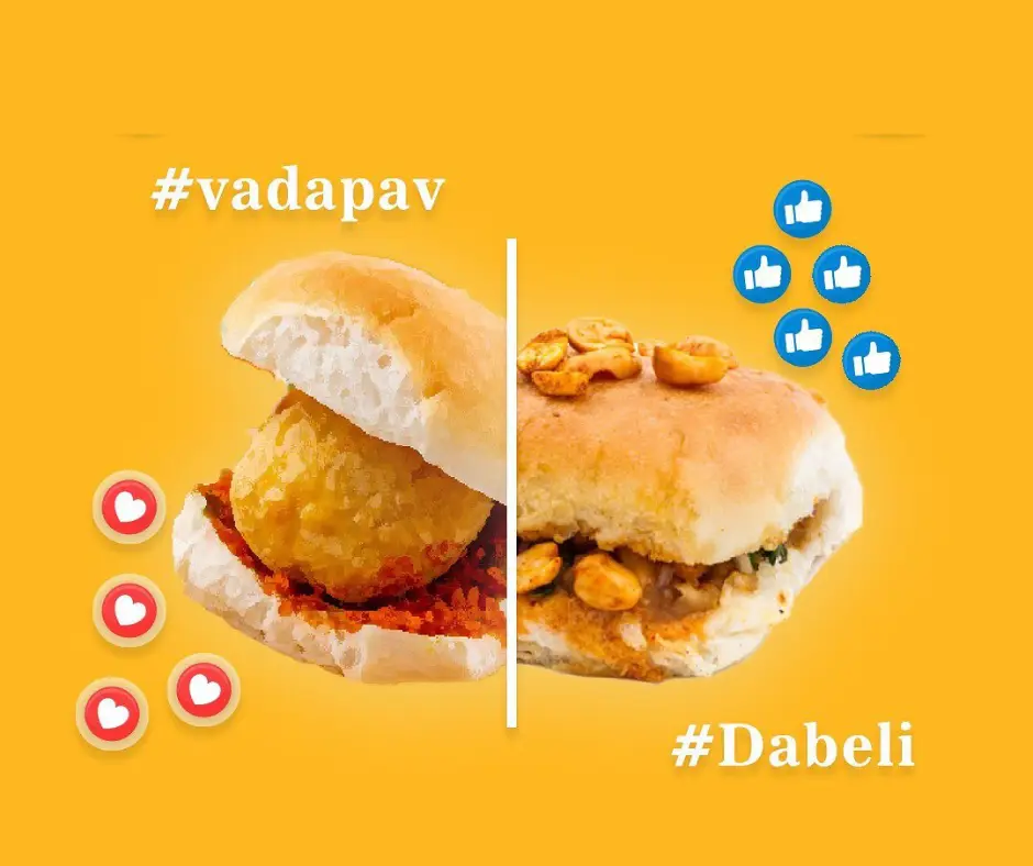 Experience the thrill of sweet, spicy, and tangy flavors packed within a soft bun. Dabeli, a fast food gem from Gujarat, is adorned with crunchy peanuts and pomegranate seeds for a perfect snack.