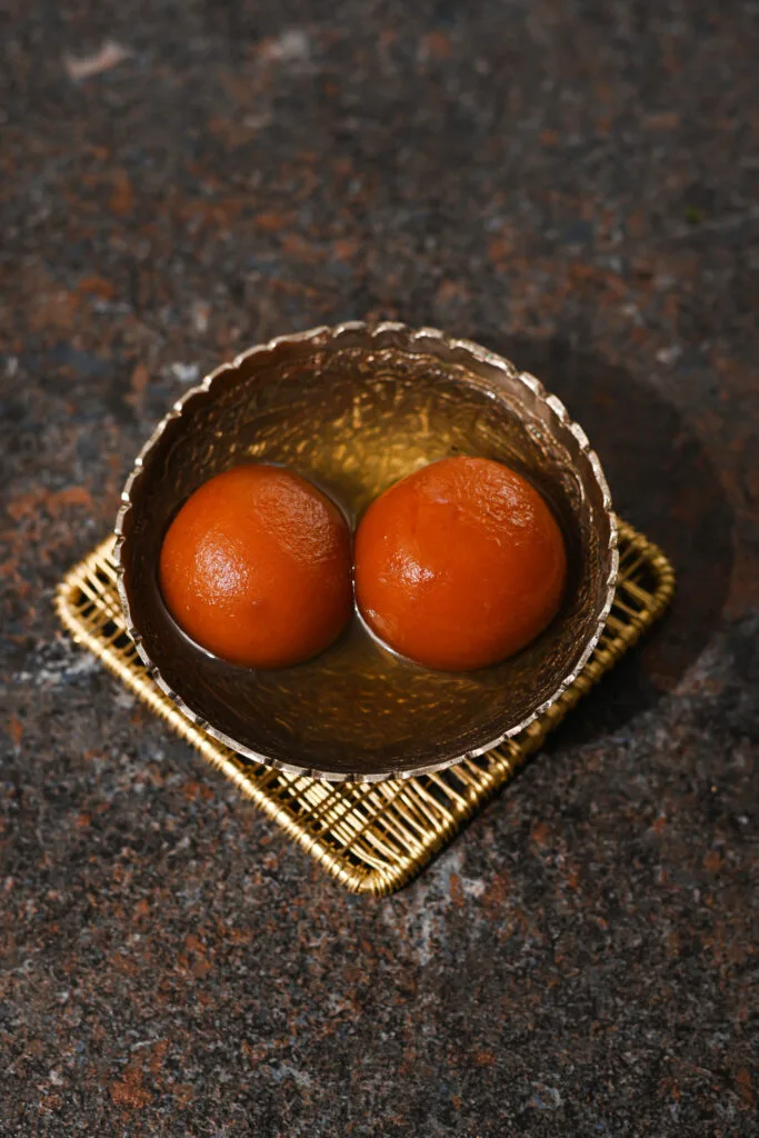 Golden fried milk solids balls soaked in a sweet rose-scented syrup. A warm, succulent dessert that melts in the mouth